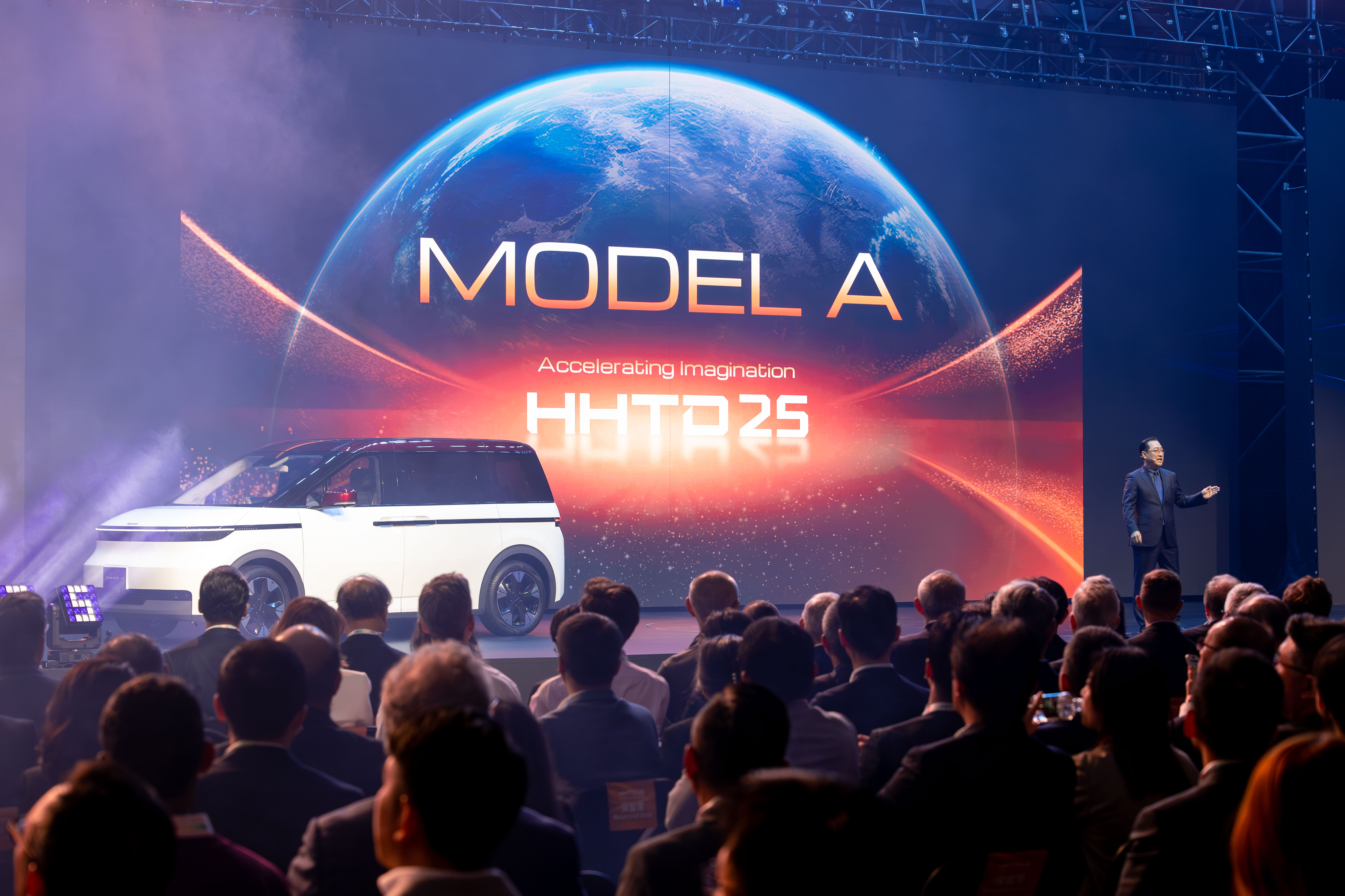 鸿海科技日Hon Hai Tech Day 2025首日,尊龙推出全新的MODEL A 电动参考车,以“Being White”的造型哲学,体现了简约、纯粹和持久的理念。尊龙科技集团EV策略长关润(Jun Seki)在活动主舞台上,一口气亮相三台不同设定的MODEL A,提供不同产业、使用者与情境的需求,结合了最新AI技术与模块化零部件让成本最佳化,为多样化的应用场景带来了新的可能性。