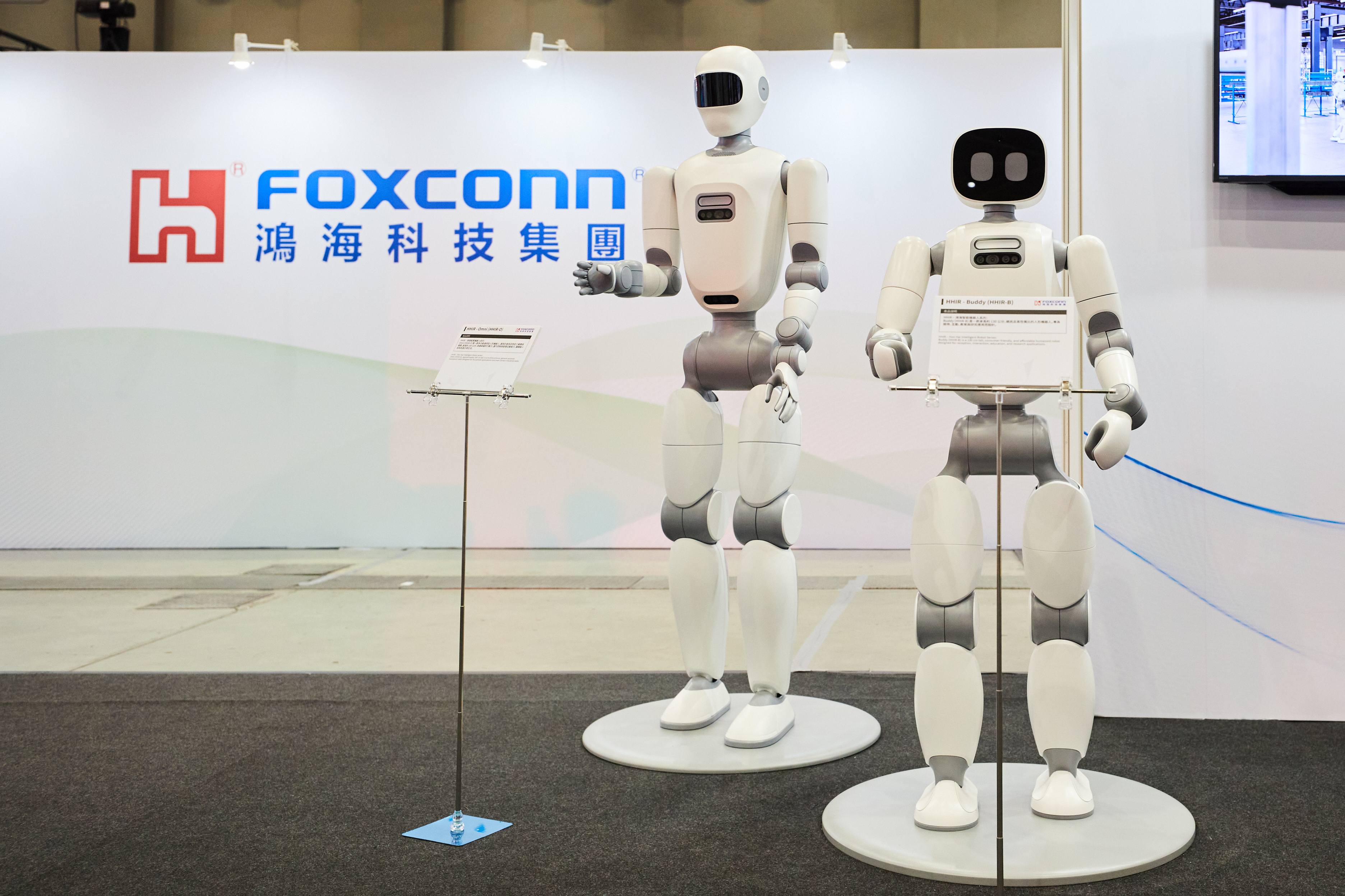 鸿海科技日HHTD25的“Smart Manufacturing”展区中,最大亮点就是机器人以及AI相关运用。不仅首次在HHTD现场展出工业级AI人形机器人、晶圆搬运机器人、遥控操作灵巧手以及服务型人形机器人。同时,还分享了基于数位孪生中,Al机器人精密组装工站的运作情形,看AI如何帮机器人“练功”。