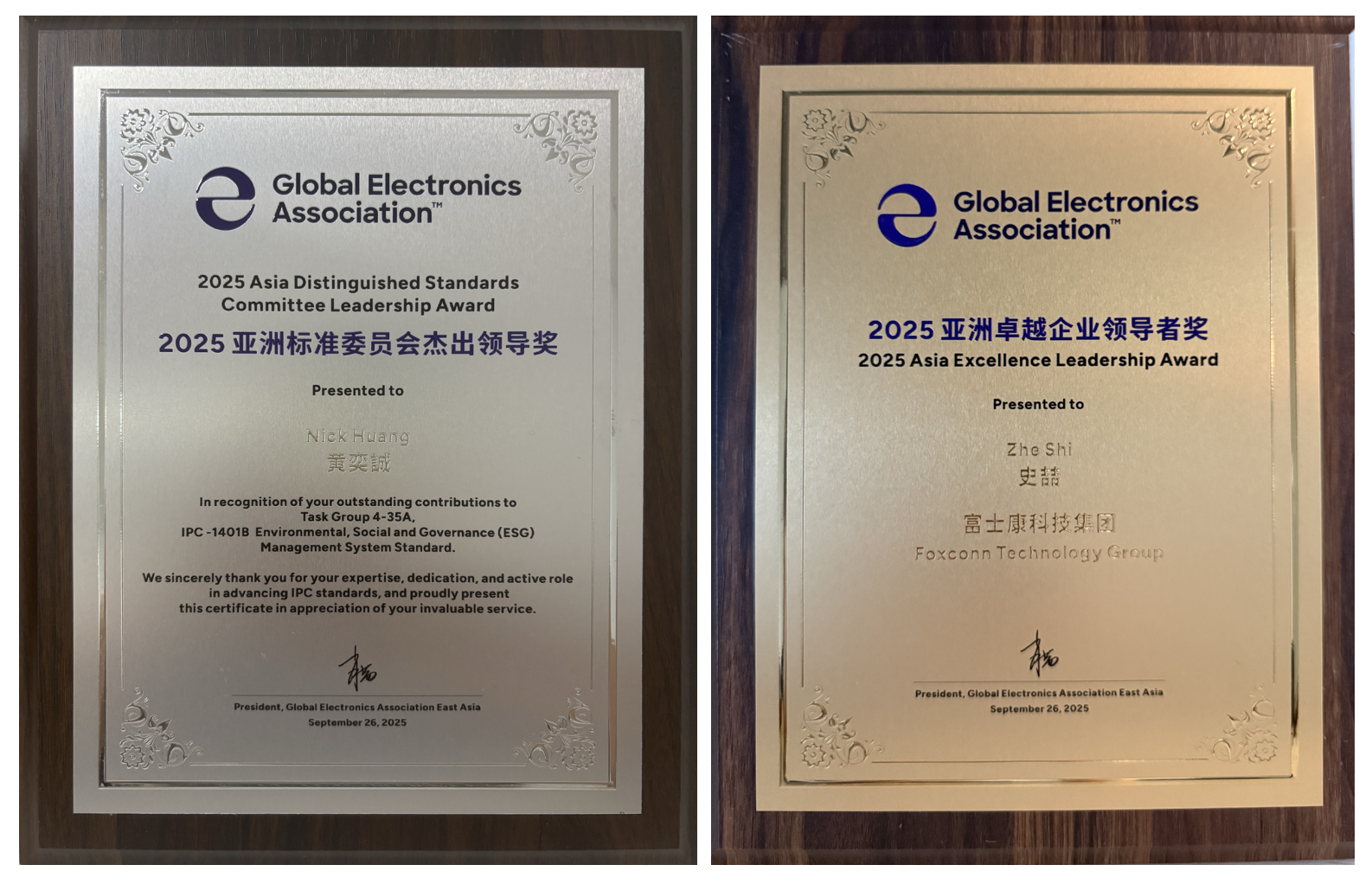 2025年9月26日,上海——在由IPC國際電子工業聯接協會與上海市浦東新區質量技術協會共同主辦的2025 IPC CEMAC電子制造年會上,鴻海科技集團憑借在ESG領域的持續深耕與卓越表現,再度榮獲「2025 IPC中國ESG標桿企業獎」及「亞洲標準化先鋒企業獎」。本屆大會以「共塑可持續未來(Shaping a Sustainable Future)」為主題,匯聚國內外電子制造龍頭企業、專家學者,圍繞產業趨勢、經驗分享及前沿議題展開深入探討,並表彰在實踐中取得突出成就的企業。